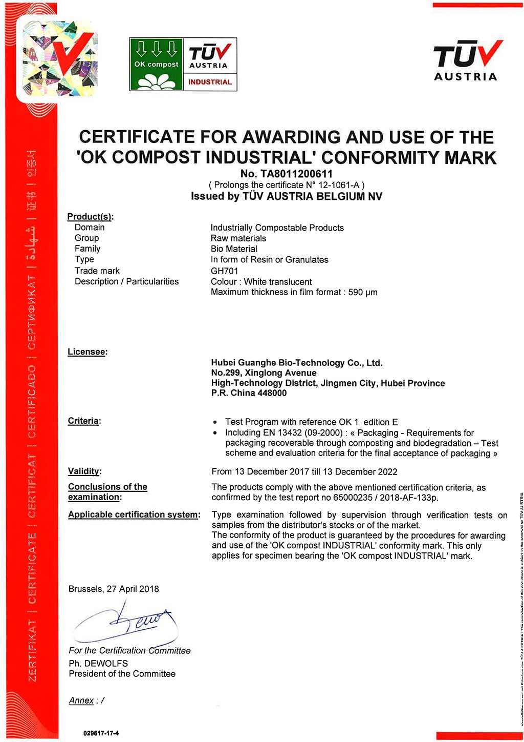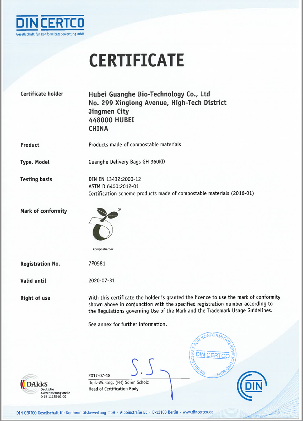 生物全降解材料認證