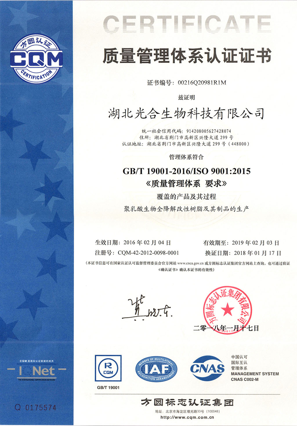 企業認證證書